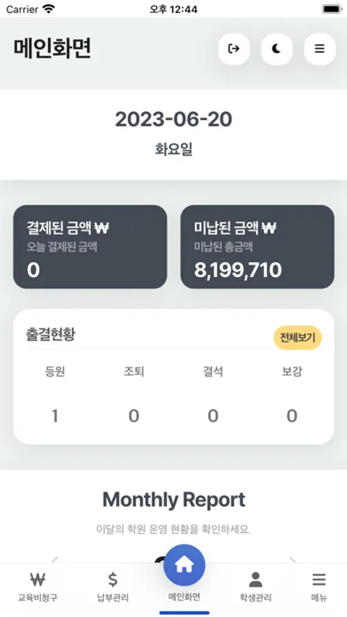 3. 납부관리 - 월별 수납 통계, 미납 학생 관리, 영수증 출력까지 PC, 태블릿, 스마트폰으로 언제 어디서든 학원 납부관리 현황을 확인하세요.