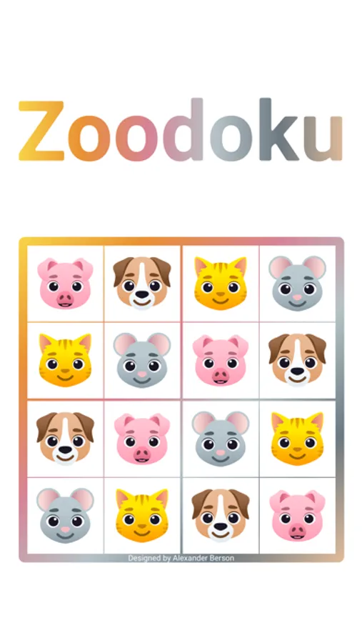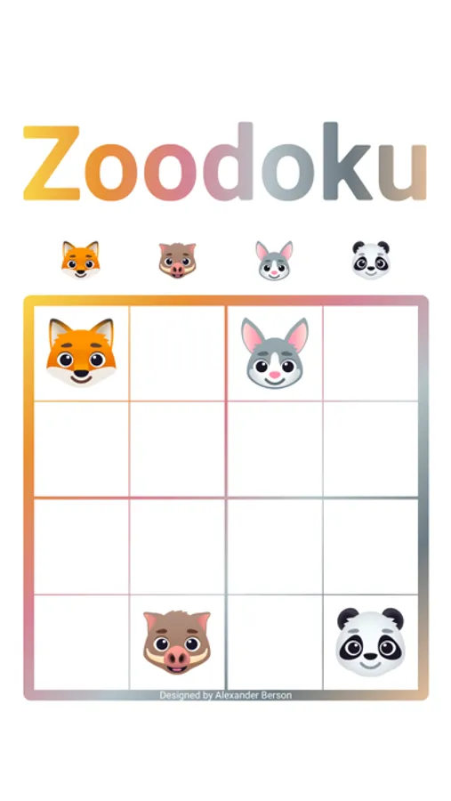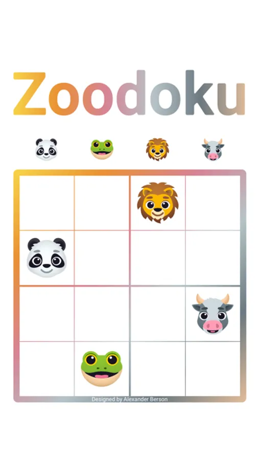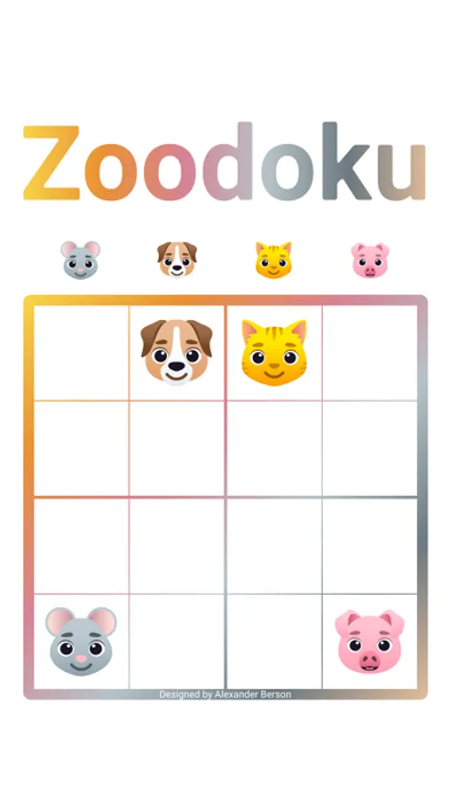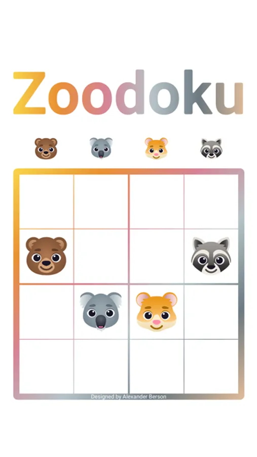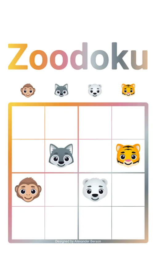 Help the animals find their homes! Fill in the empty squares so that each row, each column and each square block has four different animals.