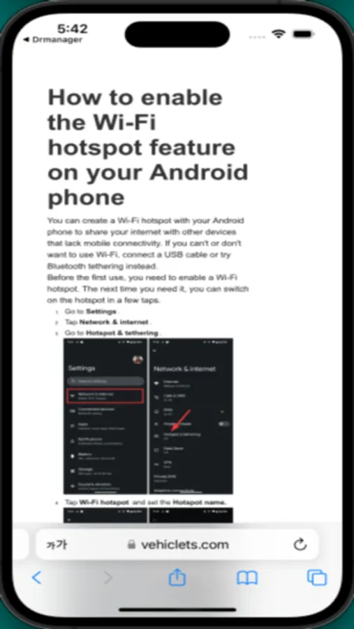 Press the AP button of IX3000 or click AP button in the OSD menu to access the mobile phone's portable hotspot.