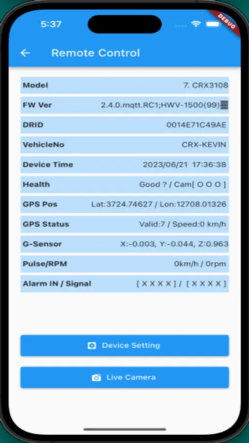 . Real-time status information of the IX3000 (version, health check, GPS, ...)