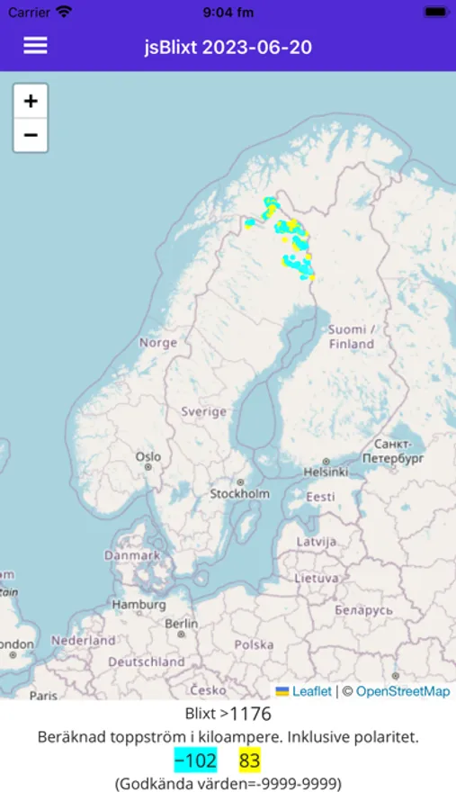 Beräknad toppström i kiloampere. Inklusive polaritet. Godkända värden=-9999-9999.