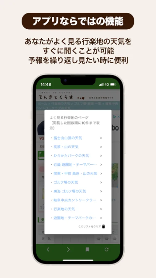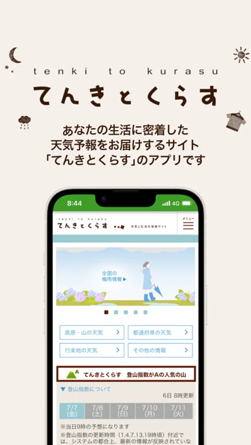 生活健康に役立つ天気予報サイト「てんきとくらす」がもっと便利に見られるアプリです!