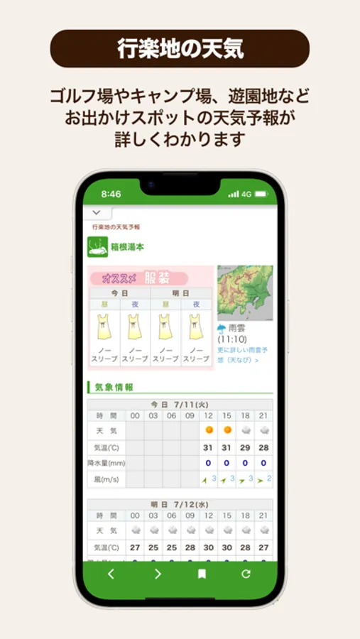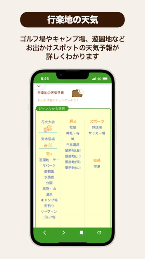 気になる行楽地の天気予報や、登山指数に素早くアクセスできます!