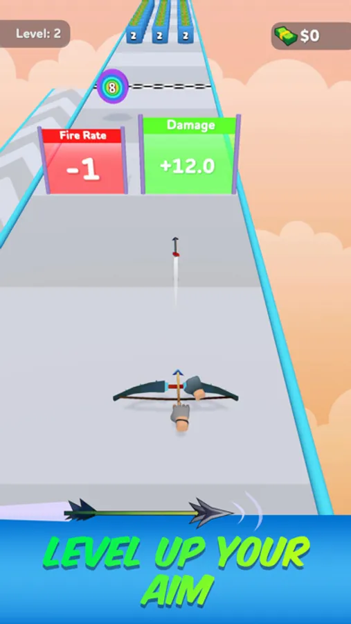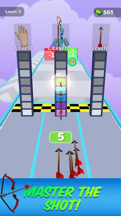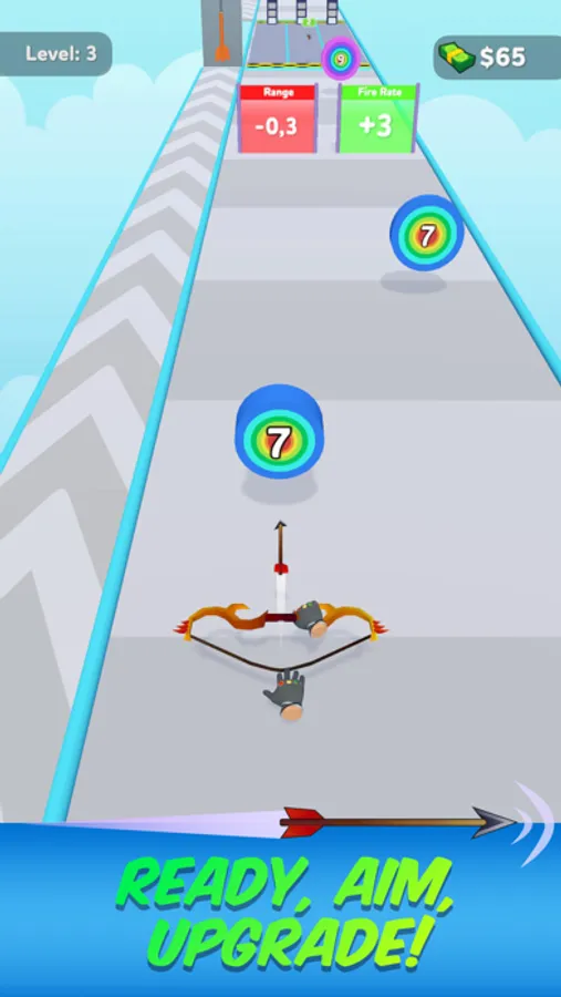 Shoot the arrows and hit the targets on the way, collect more arrows for better upgrades. Prove that you deserve the ultimate bow and arrows.. Have fun!