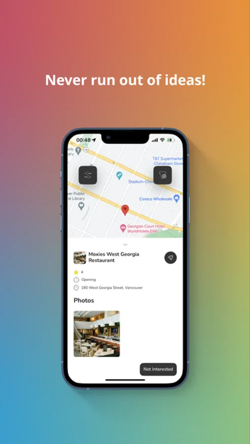 Discover the best of your city with WhereaNext! Our app recommends fun activities and delicious foods based on your location, so you can always find something new and exciting to do. Download now and start exploring!