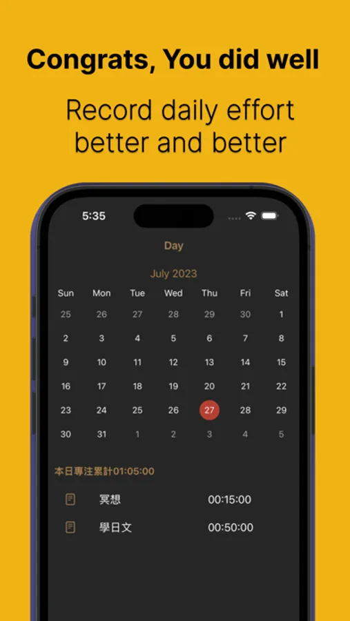 輕鬆瀏覽日曆介面,隨時查看今天的總專注時數以及過去時段的累積時數。讓您更了解自己的時間使用情況,以便做出更明智的時間管理決策。