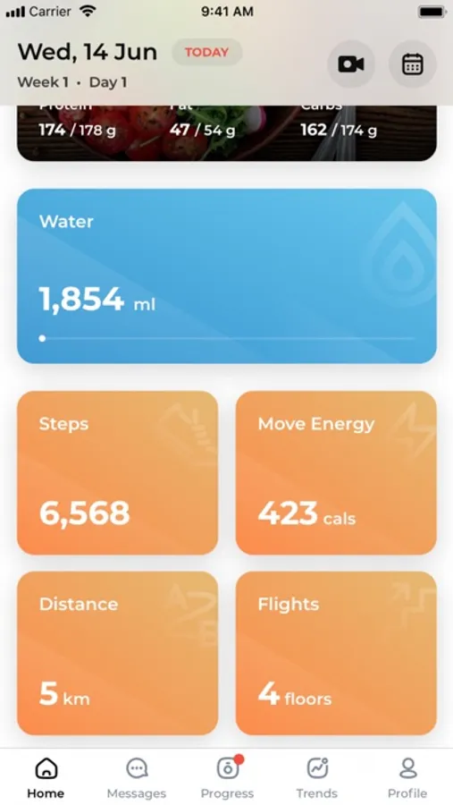 The app integrates with Apple Health to show your daily activity - distance, steps, active energy, and flights to help you better achieve your goals.