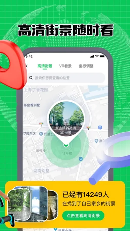 天昔街景软件,全天候360度全景街景,VR沉浸式体验,足不出户就可观看景点全景。自定义经纬度地点选择,高精度定位,高清街景随时看。