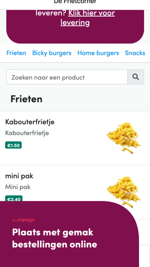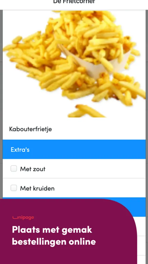 Probeer nu onze nieuwe app en ontdek hoe makkelijk en snel je je favoriete afhaalmaaltijden kan bestellen! Je kan al direct betalen en de vooruitgang volgen van je bestelling. Zo weet je precies wanneer je maaltijd klaar is om afgehaald te worden. Bon appétit!