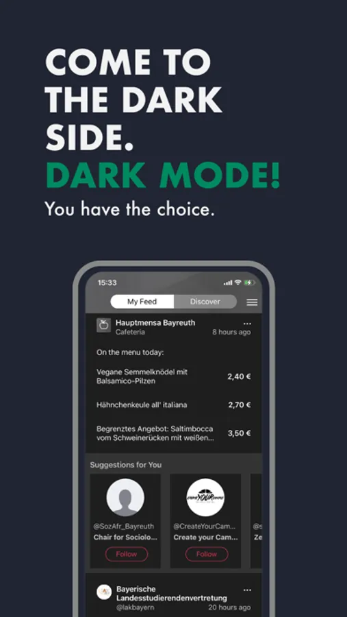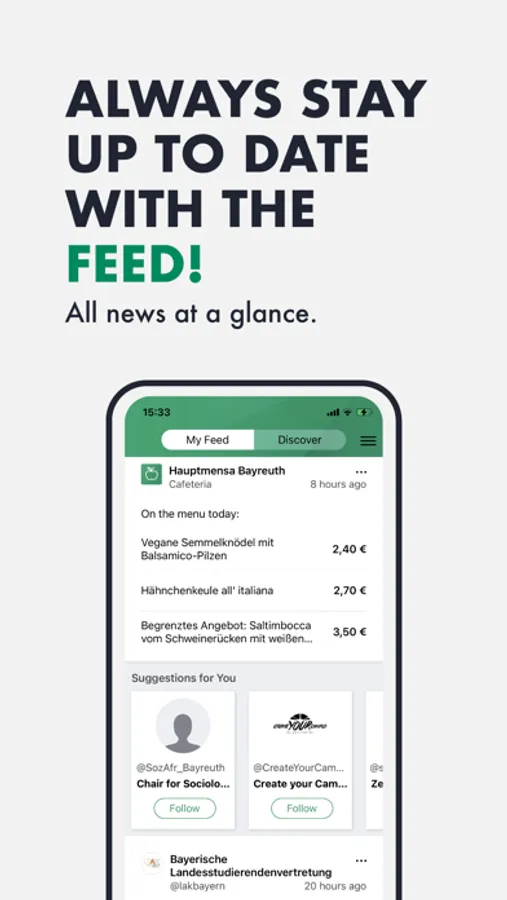The app is your team partner on campus, which is impressive and integrates perfectly into your daily study routine. In no time at all, you have all the important information about your studies with you, wherever you are. You'll be surprised how easy it is.