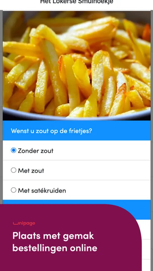 Probeer nu onze nieuwe app en ontdek hoe makkelijk en snel je je favoriete afhaalmaaltijden kan bestellen! Je kan al direct betalen en de vooruitgang volgen van je bestelling. Zo weet je precies wanneer je maaltijd klaar is om afgehaald te worden. Bon appétit!