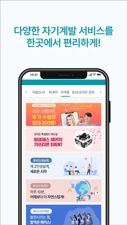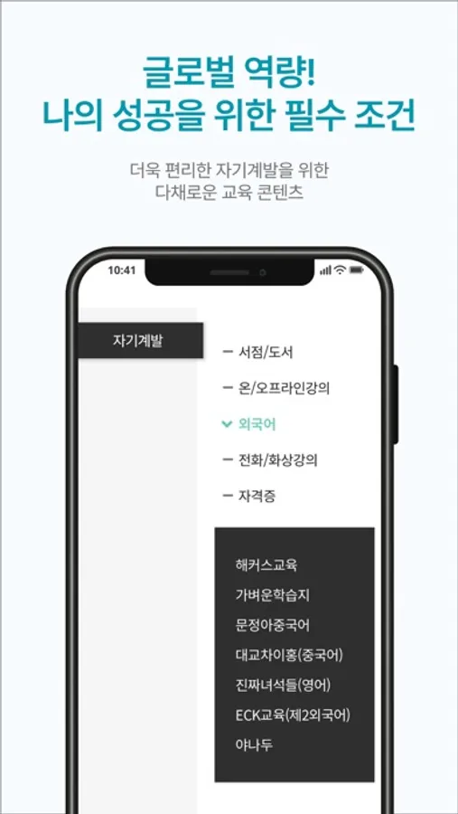 스마트 캠퍼스는 도서, 외국어 및 인문학 강의 등을 제공하여 사용자의 직무역량을 키워줍니다.