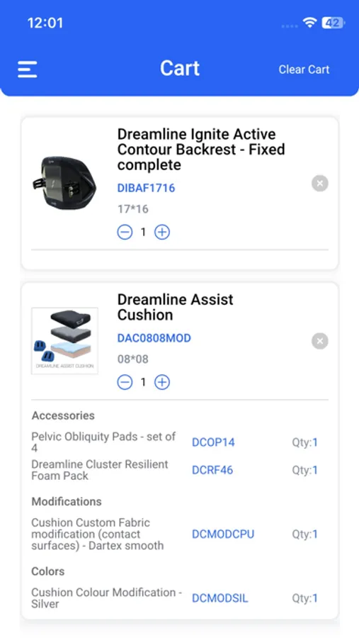 With Rolapal's Dreamline Ordering app, creating a wheelchair seating order has never been simpler. Select your preferred seating type, choose the appropriate size, customize with accessories and colors, enter quantities, and effortlessly add items to your cart. Move onto the next step in the process, or go direct to your cart to complete the order.