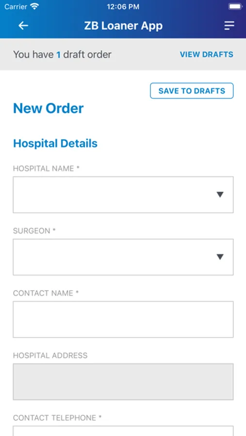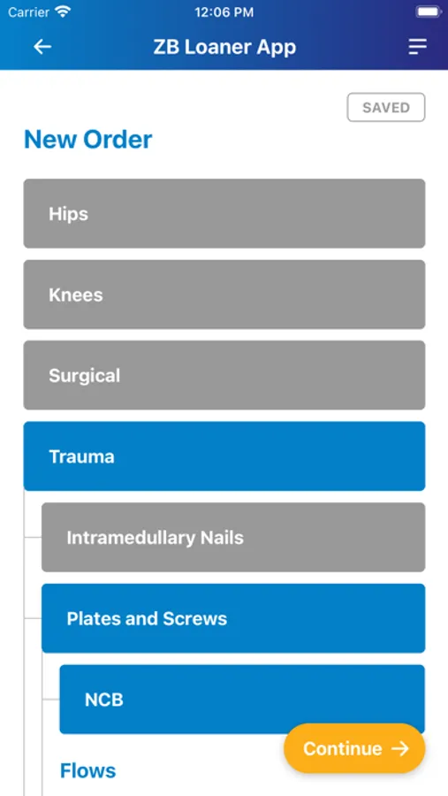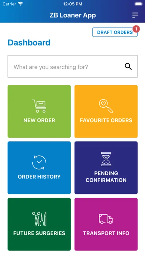 ZB Loaner App, from Zimmer Biomet, will streamline the process of identifying and ordering tools used in medical procedures involving Zimmer Biomet's products. This app takes sales representatives through a decision tree process which results in generating a notification to customer service containing the data required for the order.