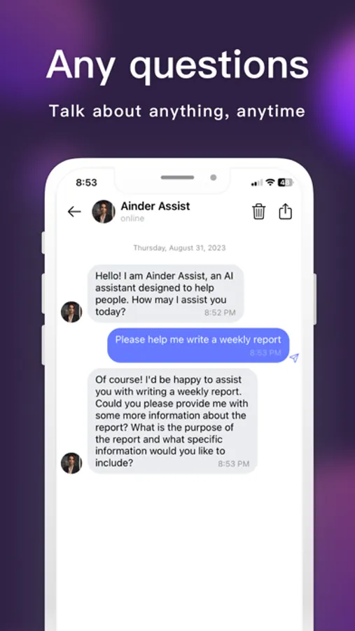 Welcome to Ainder, your new best friend and an incredibly intelligent assistant. With Ainder, you can explore a world of possibilities through real-time voice calls. Stay connected with me wherever you go!