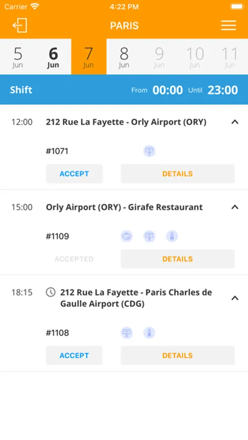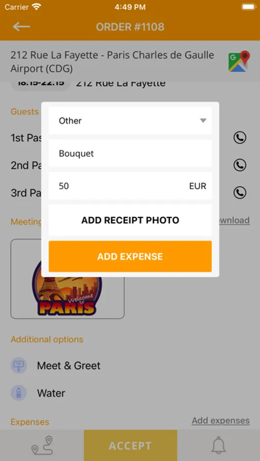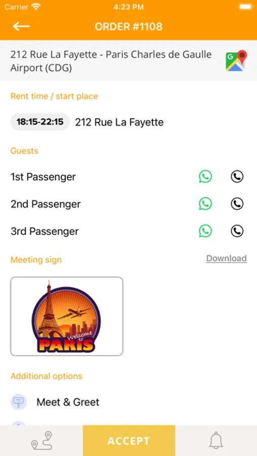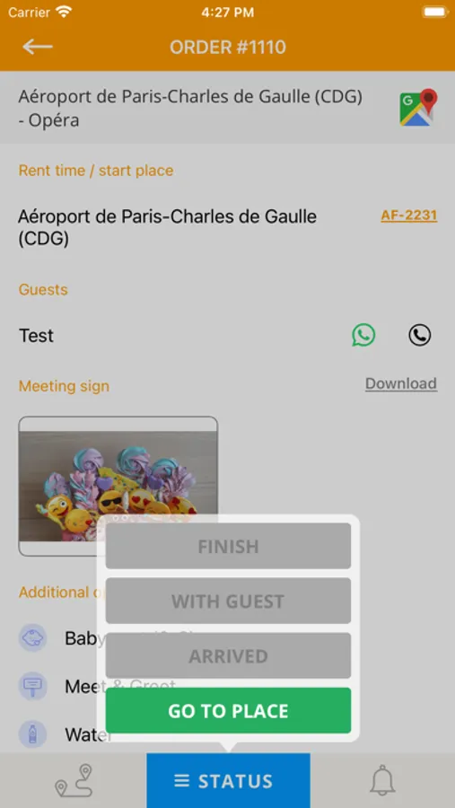 - contact guests (call or WhatsApp) and dispatchers from the app;
