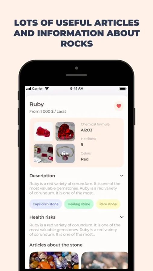 Don't miss the opportunity to dive into the amazing world of minerals and gems with Find Stone. Download the app now and become an expert in recognizing and studying various minerals and gemstones!