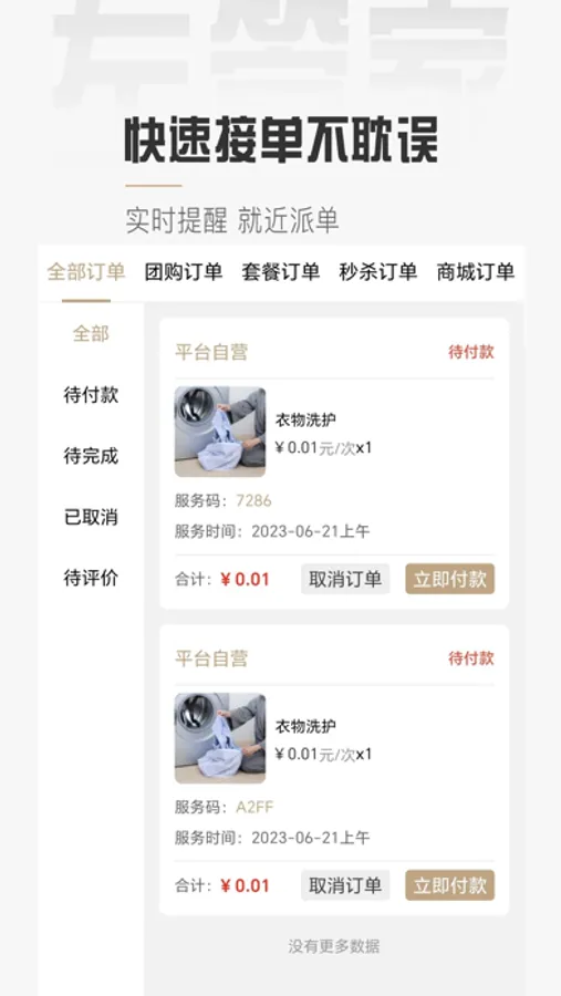 左管家技师版app一款可以让技师接活的平台,技师通过app可以接到附近的单,平台通过智能推送,并且担保交易,不用担心干活给不了钱。这款软件让技师彻底告别在家或在店里等待排钟的低效工作方式,让工作变得更高效。同时,技师能更好地展现价值和提升自身能力。