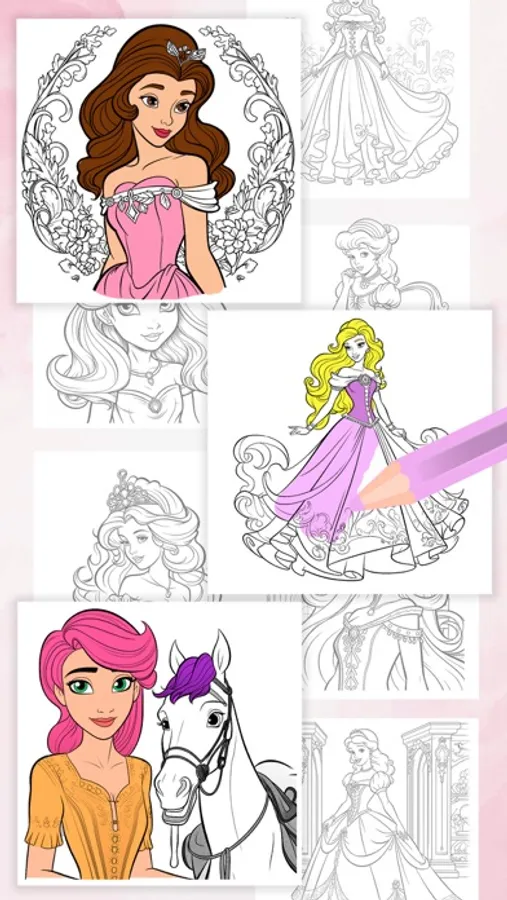 Featuring a user-friendly interface and intuitive controls, Drawing Princess Colorbook allows users to explore their artistic side by bringing beautiful princess illustrations to life with a vibrant palette of colors.