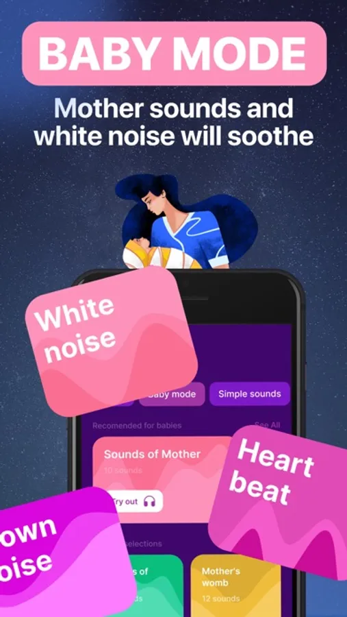 Moreover, this incredible application designed to assist in soothing your baby to sleep. It offers a variety of sounds, including white, pink, and brown noise, as well as various nature sounds, aimed at creating a calming environment for your little one.