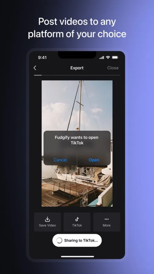 Save and Export: Fudgify allows you to save and export your videos, so you can share them on other social media platforms or keep them as a digital memento of your creativity.