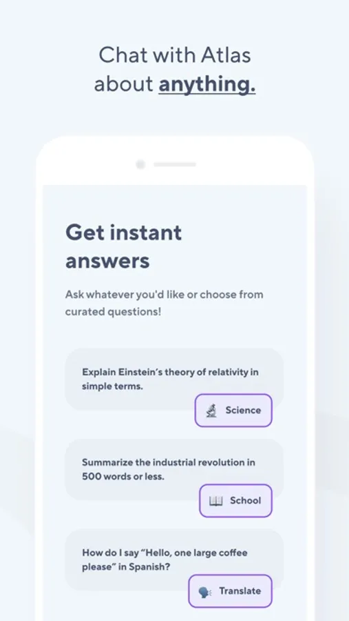 Expert Knowledge: Benefit from Atlas' immense knowledge base. No more endless internet searches - get accurate, detailed answers instantly!