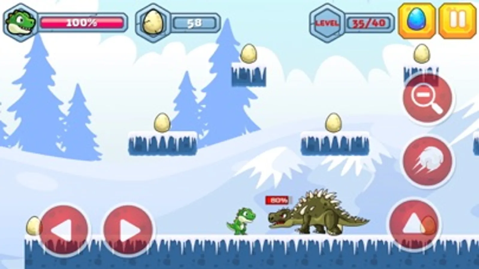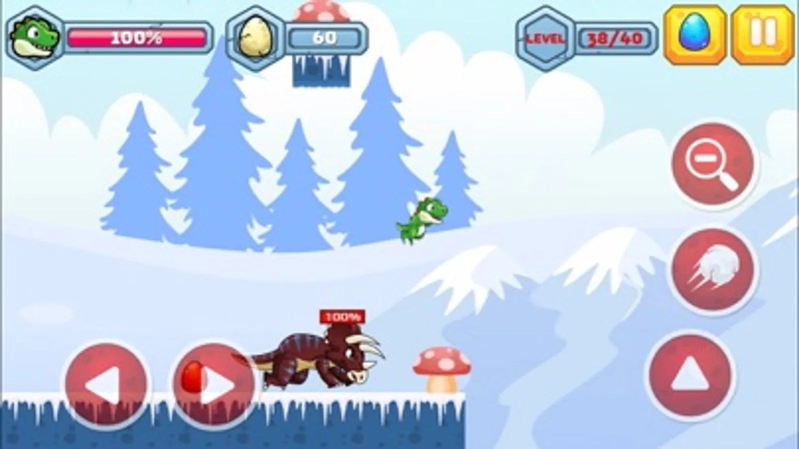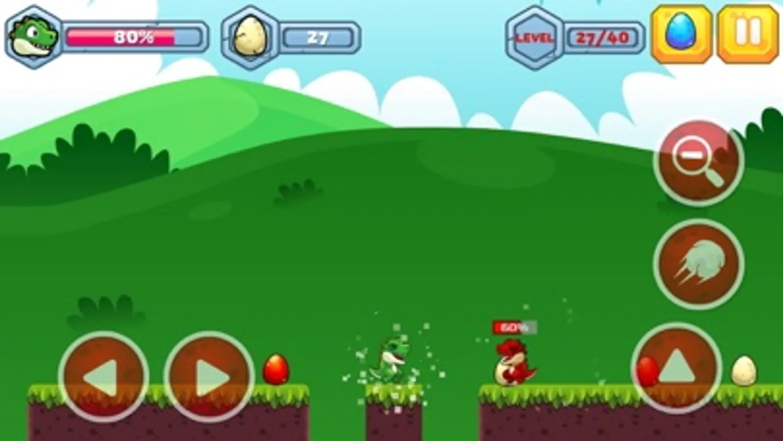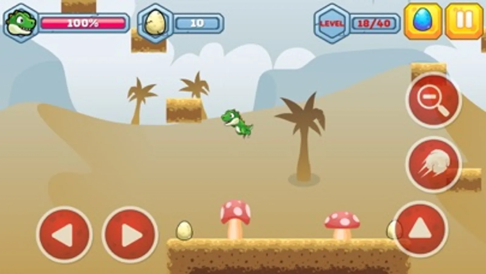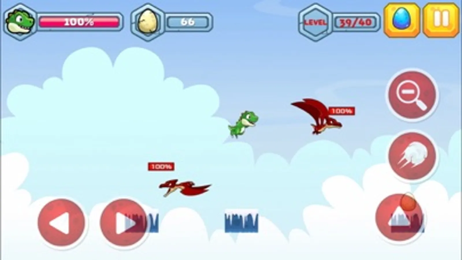 Welcome to the Dino's world! Defeat the enemy dinosaurs, collect the eggs and reach the cave!