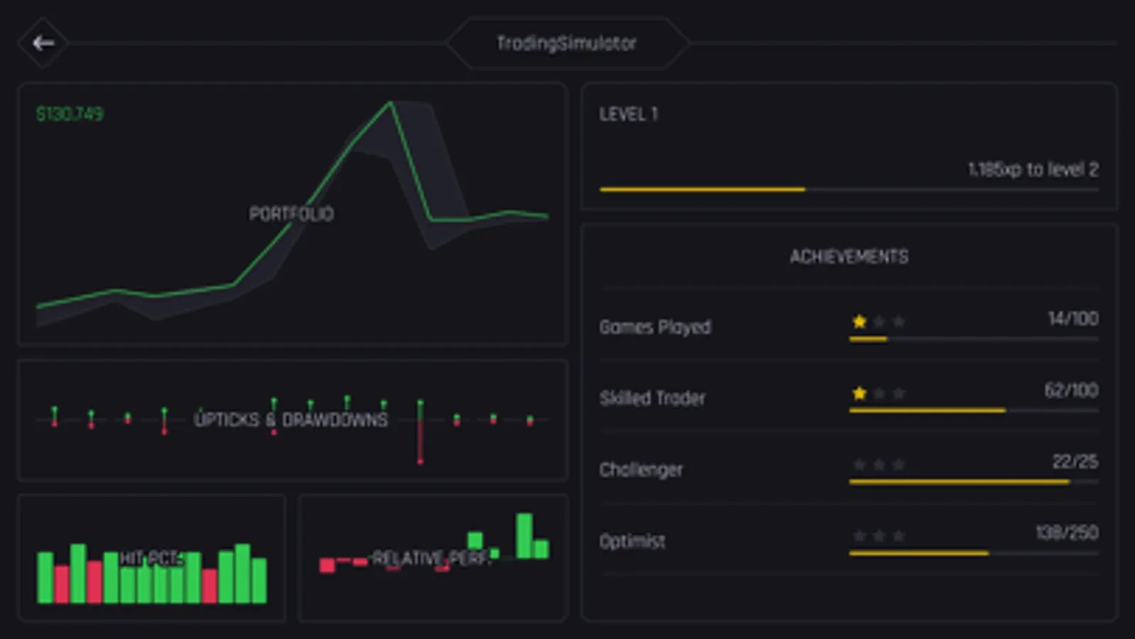 When the game ends you'll see which stock and time period you traded. The end-screen stats are useful for better understanding the game you just played. It creates a rapid feedback-loop with insight you can take with you to the next round.