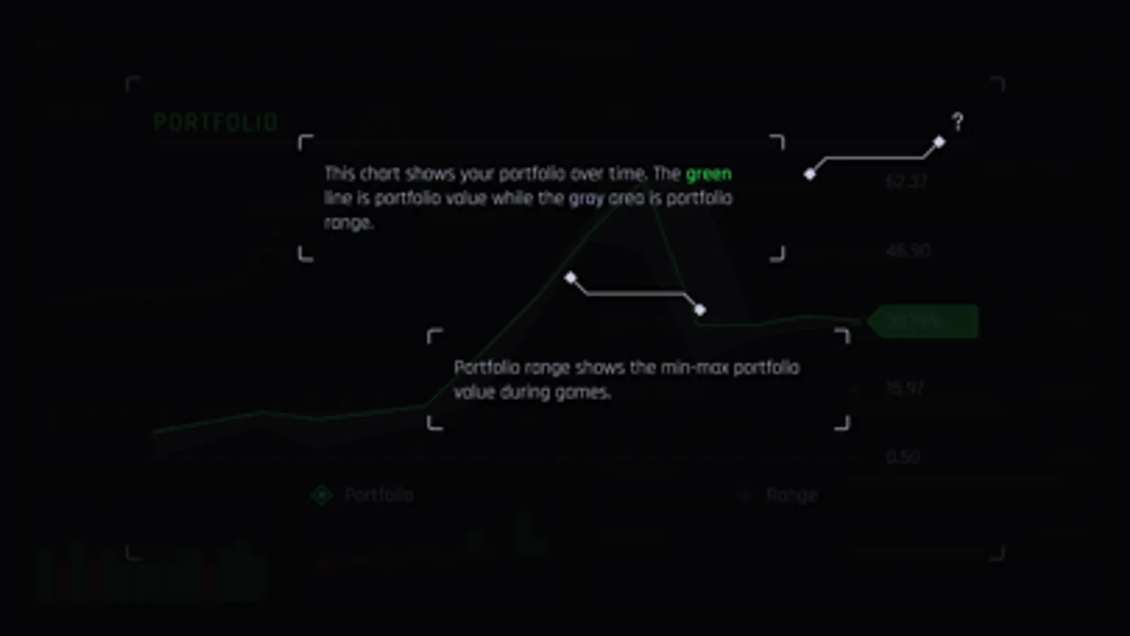 After each round we record a few notable numbers which alone don't say much, but together say everything. See how your portfolio evolves over time as well as other metrics such as hit percent and relative performance. Putting the graphs next to each other creates a more complete image of why your portfolio goes as it goes. (And it looks good for the screenshots you send to your friends)