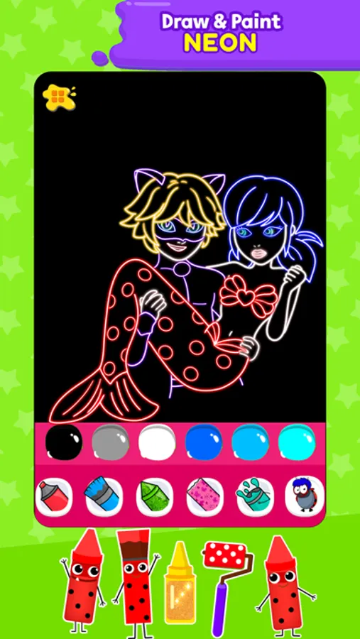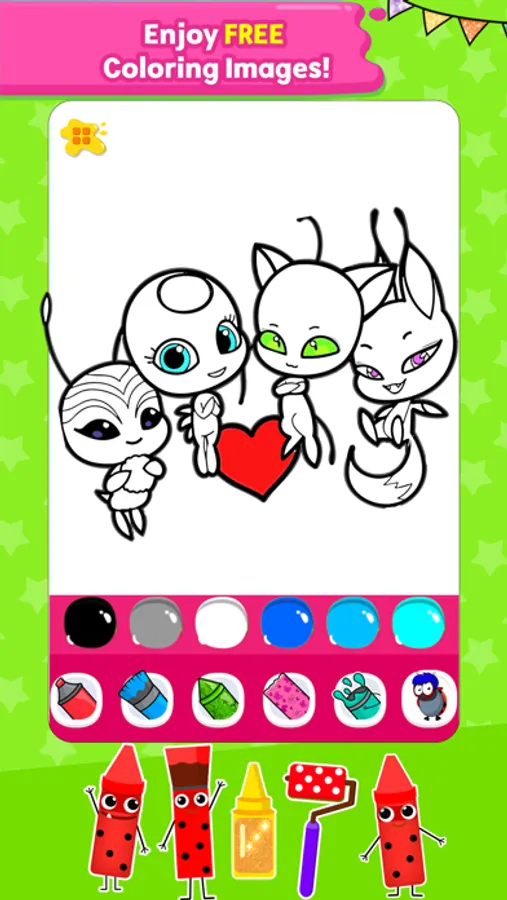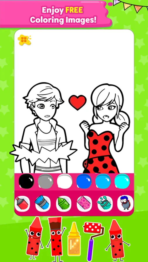 Ladybug coloring game contains beautiful coloring pictures. This is must-have app for fan of coloring and princesses.
