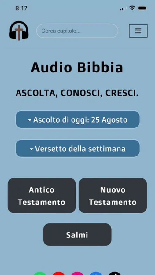 Ascolta la Bibbia ovunque tu sia. Versione Nuova Riveduta 2006. Piano di ascolto del giorno, versetti da memorizzare, e tanto altro...
