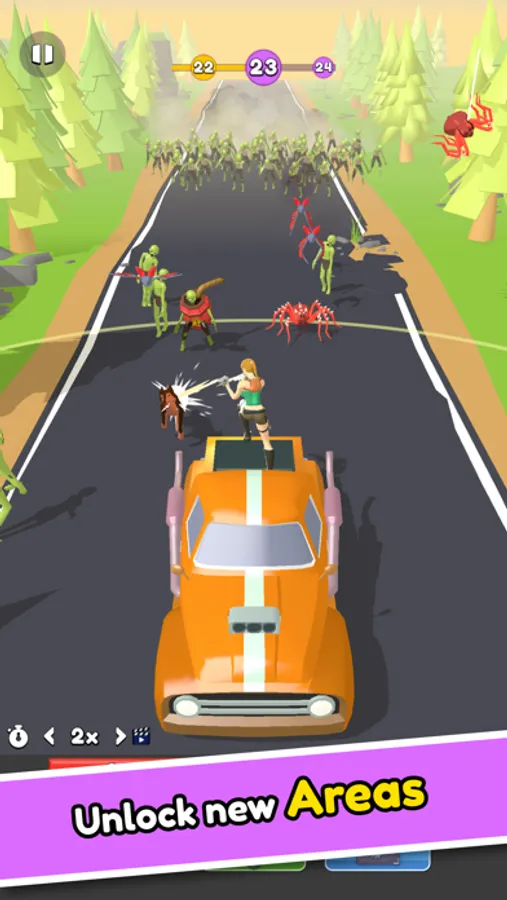 This highway is full of angry zombies, grab a gun and shoot the monsters wave by wave. To kick out these hordes of zombies, during the ride you can boost your attack, defense, and special characteristics. You have to buy the upgrades first, and you'll collect money for each enemy you kill. After that you can, for example, raise your damage or improve attack speed, increase your health, maximize your profit for each zombie or each wave you pass, etc.