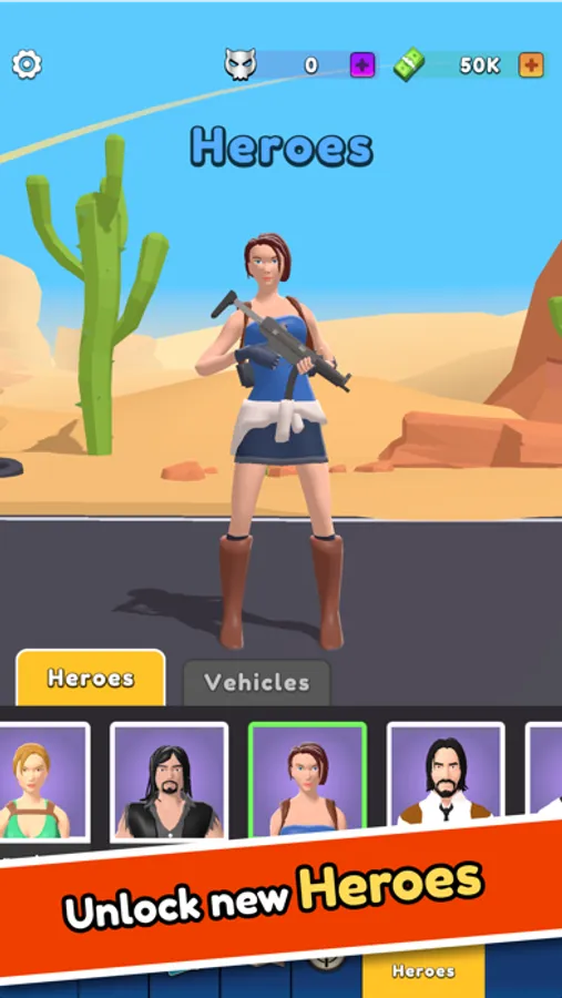 Remember that any upgrades you make during the race will be burned after you lose. But that's okay, shooter! Every defeat is an opportunity to make yourself better, so that the next time you come back to the battlefield you can win. Between battles you have the chance to improve your stats permanently for the money! Moreover, for skull currency you can unlock cards with unique passive and active skills, which you can use with a tap during the fight!