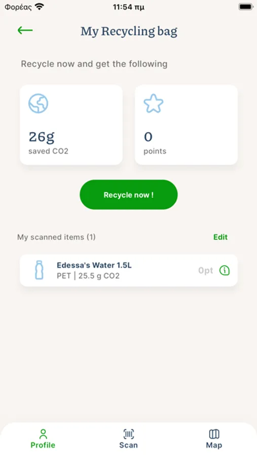 It's simple! After you've consumed your drink, you scan the barcode on empty PET bottles or aluminium cans through the "scan" button in our navigation bar. Then you find the closest recycling spot (collector) using the "map" button, you take the empty packages there and you click on the recycle here button! Bingo!