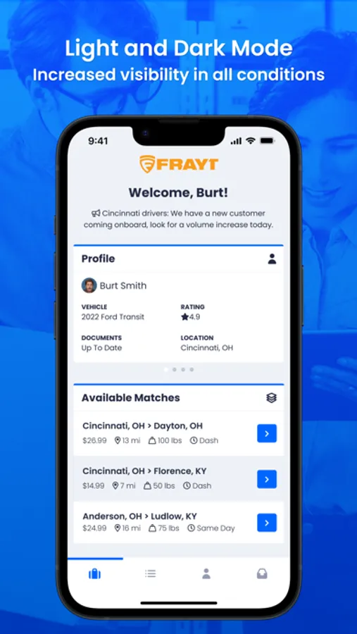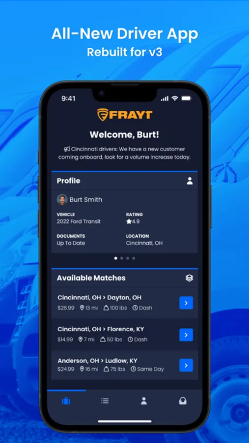 FRAYT is an on-demand delivery app that allows independent contractors to work for themselves on their own schedule. Apply to be a driver in the app today, and when approved you can start taking deliveries and making money.