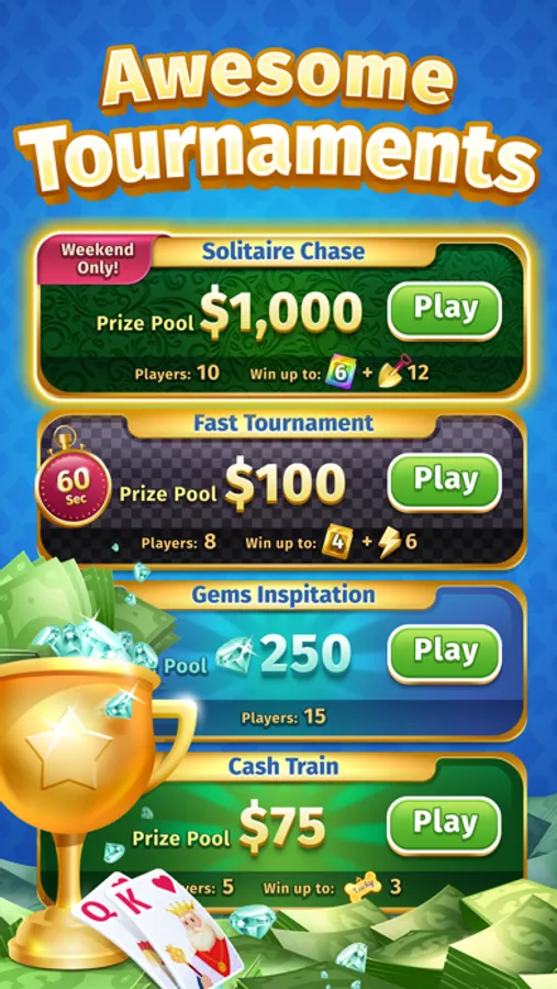 Solitaire Stash™ is your destination to challenge your STRATEGY and SWIFTNESS in playing against other solitaire lovers to WIN REAL CASH.