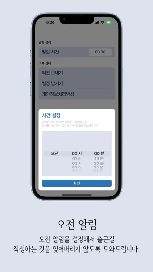 - 출근하는 시간에 맞춰서 알림을 설정할 수 있습니다.