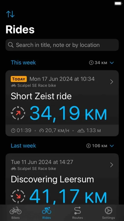 • Search, Sort, and Filter Through All Your Rides: Sort and filter rides by date, duration, distance, elevation, direction, bike, local, abroad, and more.