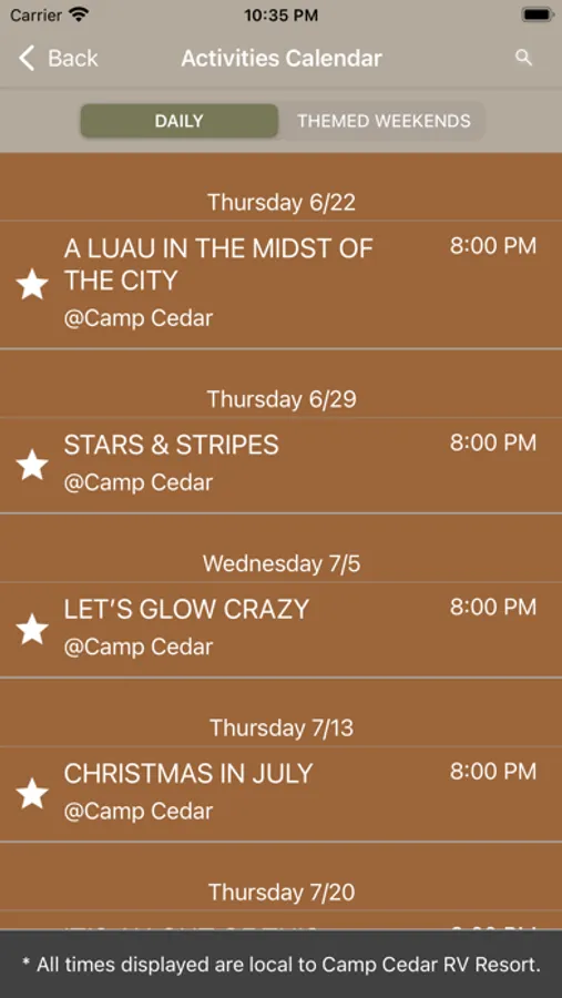 Never miss an activity you enjoy, star it to get a notification