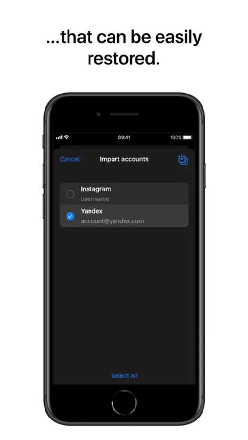 - Backup and Restore: TwinKey allows you to create full or partial backups of your accounts. Restore only what you need when necessary.