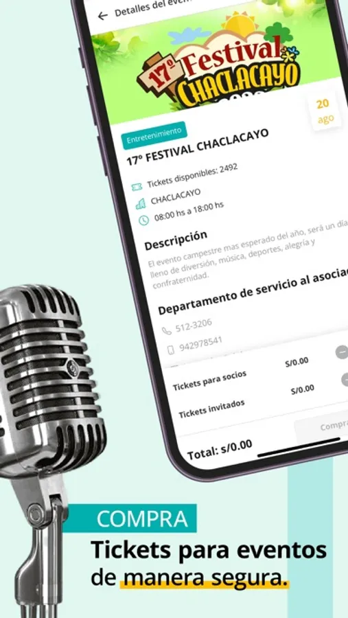 ¡Bienvenido a la aplicación móvil del Club! Aquí podrás comprar tickets para nuestros emocionantes eventos, reservar bungalows para una estadía relajante y participar en nuestros sorteos de bungalows de fin de semana. Con nuestra aplicación, tendrás acceso a todas las novedades del Club en la palma de tu mano. Compra tus entradas para nuestros eventos más populares, reserva tu bungalow favorito y participa en nuestros sorteos para tener la oportunidad de disfrutar de una estadía de fin de semana en uno de nuestros hermosos bungalows.