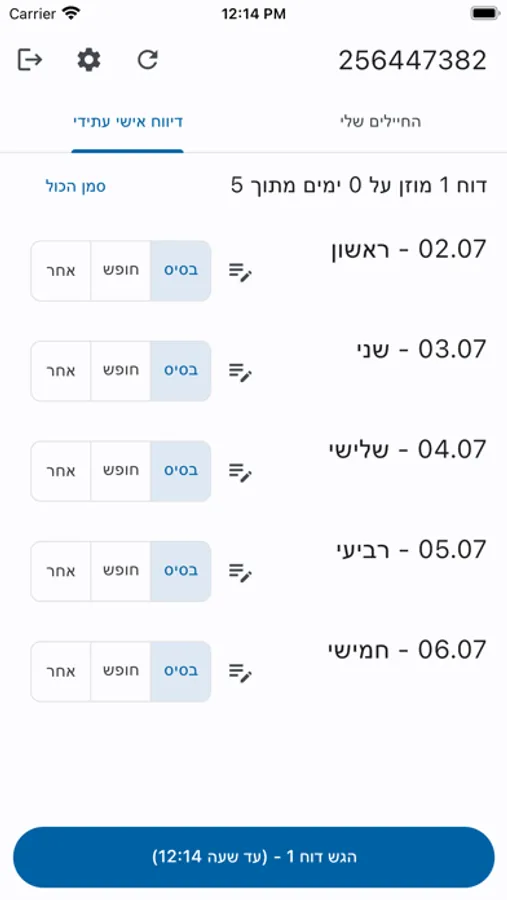 שימו לב, לא מדובר במילוי *אוטומטי* של דו"ח 1. אין מילוי אוטומטי וצריך למלא בכל יום ממש כמו באפליקציה הרגילה.