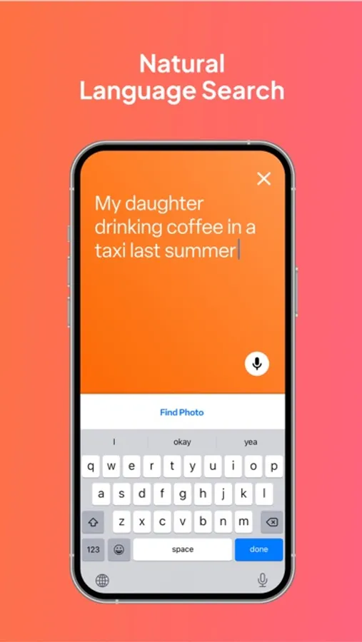 Picdmo is an Artificial Intelligence (AI) powered app that analyzes your pictures, creates albums for you, automatically puts your pictures in your custom albums, and allows you to use complex natural language search phrases to find the exact photo you're looking for in seconds. After you upload all your pictures to Picdmo use the AI-powered search that finds the exact photo you’re looking for in record time. Just speak into the app the way you think. For example, "Show me all my pictures of me drinking a blue drink on the beach". Find the photo you’re looking for and never abandon your search in frustration again. Additionally, uploading your pictures to Picdmo provides secure cloud backup for all your photos.