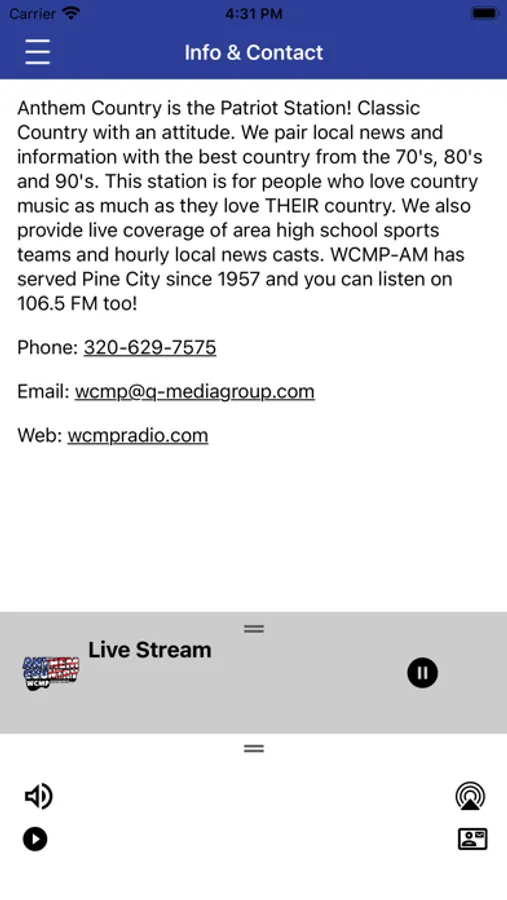 Anthem Country is the patriot station! Classic Country with an attitude. East Central Minnesota and Northwest Wisconsin’s favorite Classic Country station. This station is for people who love country music as much as they love THEIR country. Get local news and sports from the Pine City area!