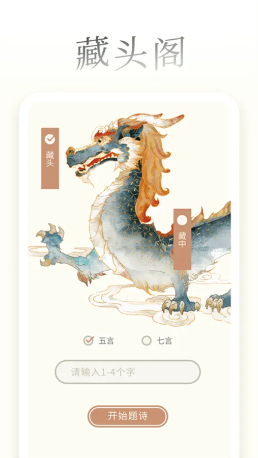藏头格:藏头/尾/中诗自动生成,用更诗意的方式,表达你的所感所悟。