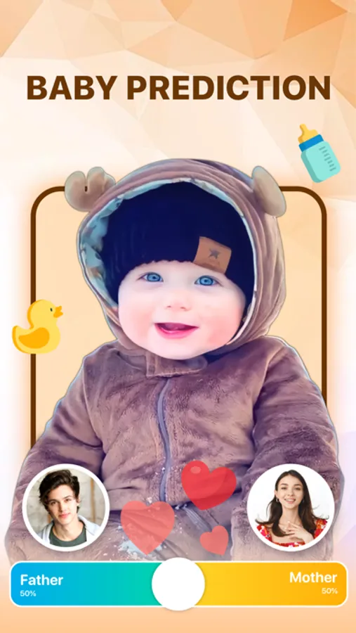 Baby Face Predictor: Curious about what your little one will look like? With our cutting-edge artificial intelligence, simply upload images of yourself and your partner to unlock an enchanting glimpse into your future baby's face.