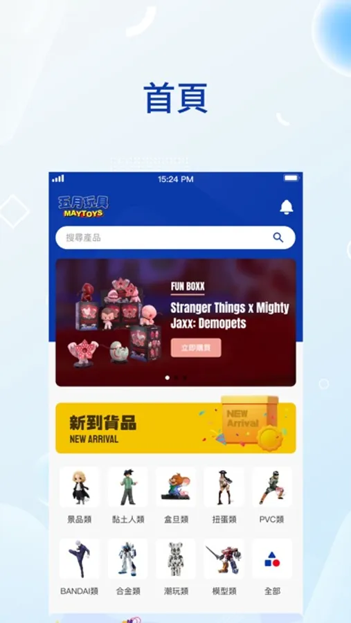 May Toys was founded in 2007 and has grown to 5 stores. Its branches specialize in the above major brands of animation scenes, clay people, PVC figures, box play, twisted eggs, alloy, models and fashion collection of various types of toys spot retail business and provide goods booking services.This app is developed to expand business, develop online channels, facilitate customers to place orders directly online, and bring consumers convenient experience.