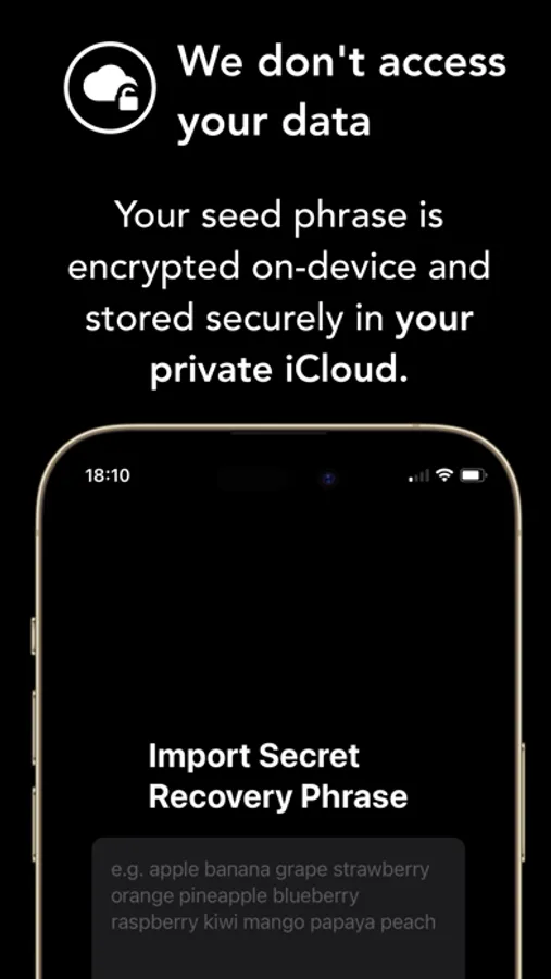 Finally, your encrypted seed phrase is securely stowed in your private iCloud. This dual security mechanism - on-device encryption followed by secure iCloud storage - provides an added layer of protection, rendering your seed phrase unintelligible even if iCloud access is compromised.