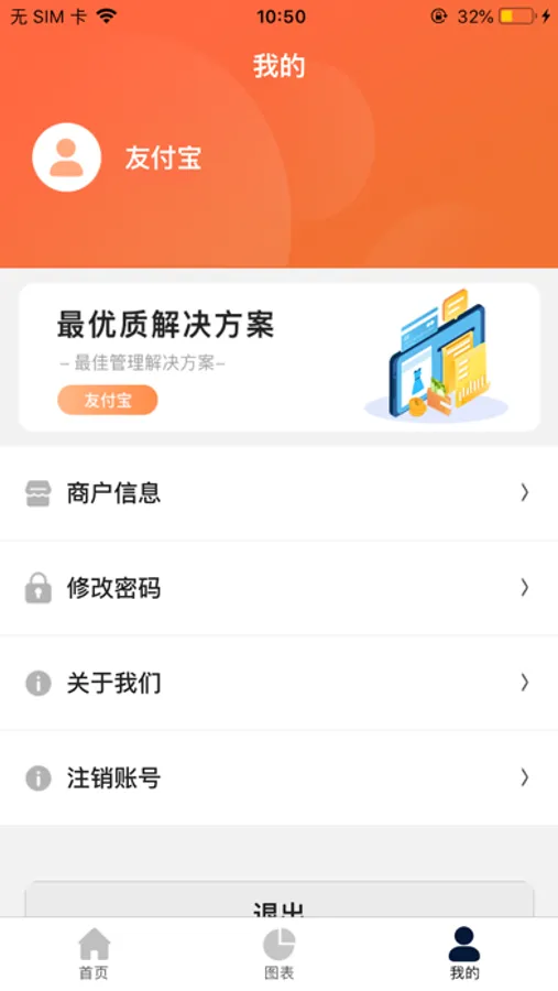 友付宝,是一款服务于商户的APP,通过APP可以进行商户认证、终端管理、交易查询、注销账号等功能。