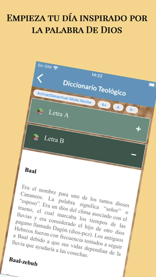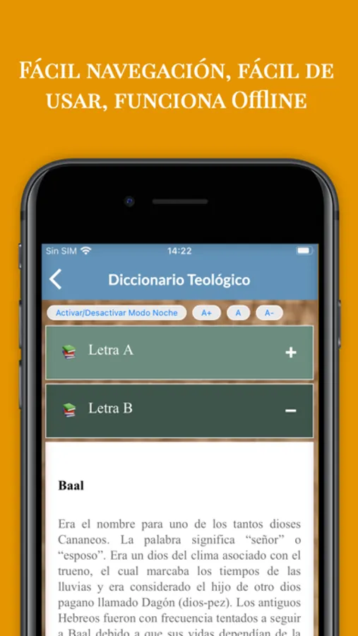 - Diccionario Teológico: Totalmente offline para que usted pueda consultar cuando desee todas las definiciones acerca de la teología.
